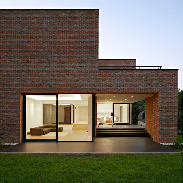 Designed by dva arhitekta, this home is located in Zagreb, Croatia: ”The house is designed for a young family who wanted to build a home in greenery near the city centre. Mostly small apartment buildings and single family houses slowly take place of traditional houses with gardens which used to provide idyllic, almost pastoral atmosphere of the area. The main requirement of the project was to hide away from neigbours and provide views and orientation to the south and greenery. By the usage of waste brick as a facade cladding the house fits perfectly to the eclectic atmosphere of its surrounding.”visit : dva-arhitekta